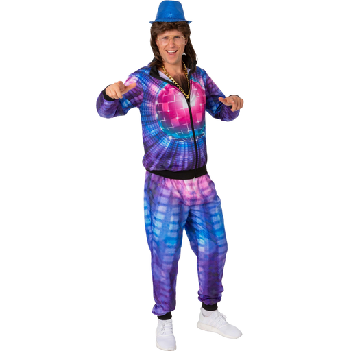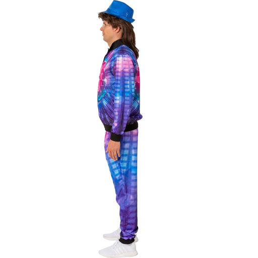 Auffälliger Unisex-Trainingsanzug in satten Blau-, Violett- und Pinktönen, der sofort ins Auge fällt.Die schillernde Discokugel auf der Front sorgt...