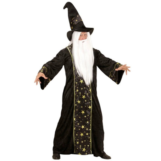 Tauche ein in die Welt der Magie mit diesem Zaubererkostüm. Die schwarze Samtrobe mit goldenen Sternen und der passende Hut verleihen dir eine gehe...