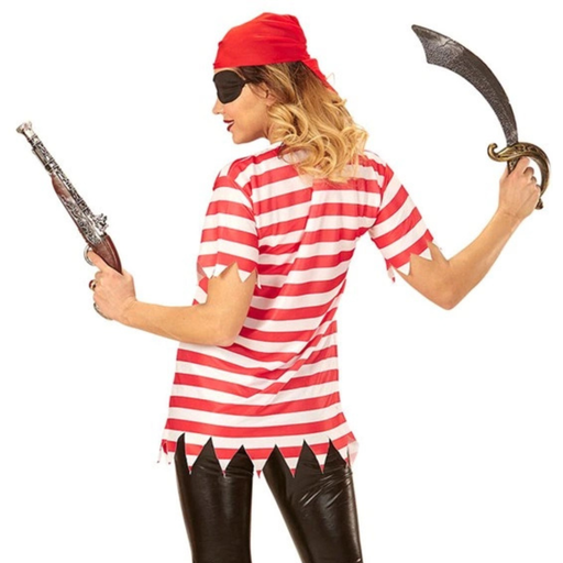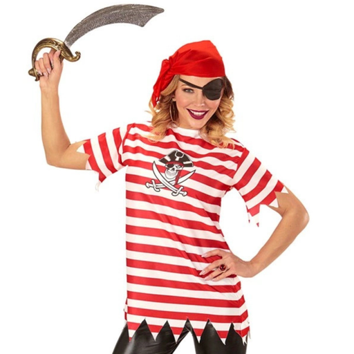 MaskeradeAhoi, Piratin! Mit diesem Piratinnenset bist du bereit für jedes Abenteuer auf hoher See.Das rot-weiss gestreifte T-Shirt mit Zackensaum und Totenk...