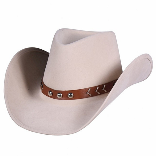 MaskeradeYeehaw! Schwing dich in den Wilden Westen mit diesem hellbeigen Cowboyhut, verziert mit einem braunen Band mit Nieten. Perfekt für Kostümpartys, We...