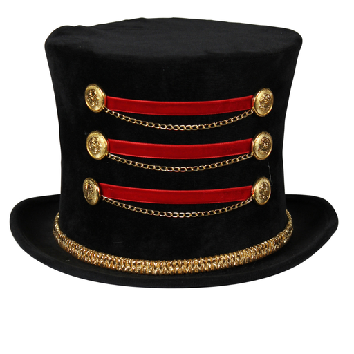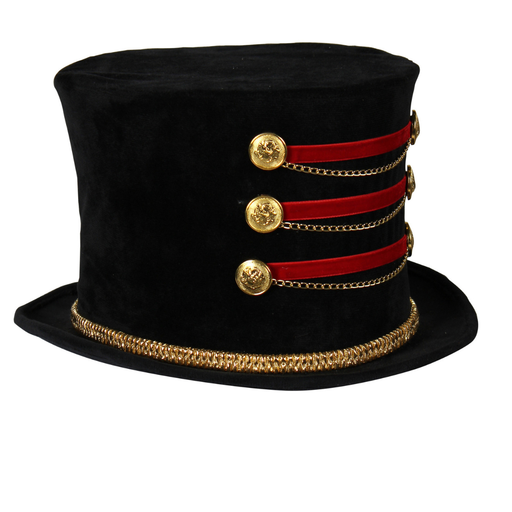 MaskeradeEin echter Blickfang ist dieser schwarze, kunstvoll verzierte Zylinder! Er wird durch sechs goldene Knöpfe auf der Vorderseite veredelt, die mit ro...