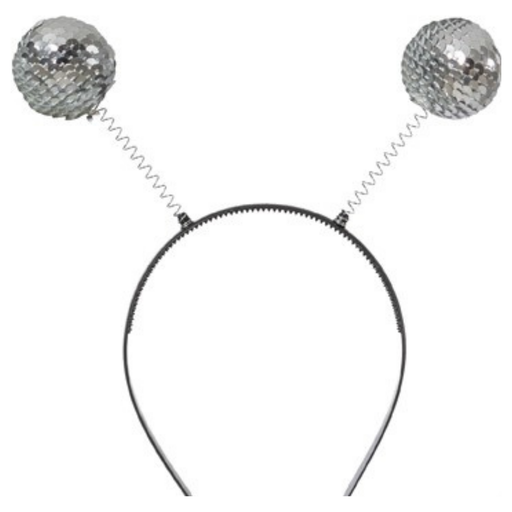 MaskeradeMit diesem Haarreif mit Discokugeln bringst du sofort Disco-Feeling auf jede Party. Die zwei silbernen, paillettenbesetzten Kugeln sitzen auf beweg...