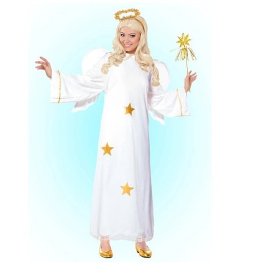 Verwandle dich in einen himmlischen Engel mit diesem  Kostüm aus weissem Kleid mit goldenen Sternen, einem Heiligenschein (Haarreif mit goldenem La...