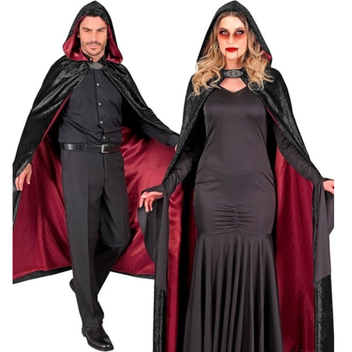 Dieser schwarze Samtumhang mit rotem Innenfutter verleiht jedem Auftritt eine edle, geheimnisvolle Aura. Die großzügige Kapuze und die kunstvolle S...