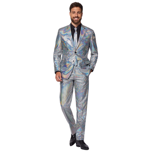 MaskeradeOpposuits Discoballer Ein Anzug, der alle Blicke auf sich zieht: Der Stoff funkelt mit unzähligen kleinen Kacheln mit holografischem Effekt – wie e...