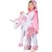 Reite auf deinem eigenen zauberhaften Einhorn und tauche ein in eine Welt voller Fantasie und Glitzer! Das Kostüm in Weiß und Rosa begeistert mit schimmerndem Horn, Flügeln und Hufen sowie einer superflauschigen Mähne zum Kuscheln. Perfekt für Fasching, Partys und magische Abenteuer!