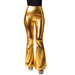 Mit dieser goldfarbenen, elastischen Schlaghose mit hohem Bund wirst du garantiert zum Blickfang! Style dich als Disco-Queen, Glamrock-Star oder schillernde Party-Ikone und sorge für den perfekten Auftritt an der Fasnacht oder deiner Mottoparty. Der figurbetonte Sitz und der glänzende Look bringen Glanz und Glamour in jedes Outfit.