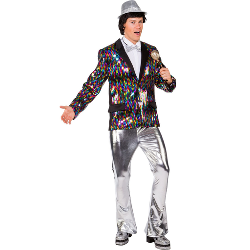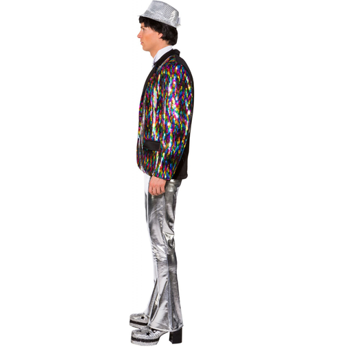 Vollständige Details anzeigenSilberfarbene Schlaghose Mit dieser silberfarbenen Schlaghose wirst du garantiert zum Blickfang! Style dich als Disco-King, Glamrock-Star oder schi...
