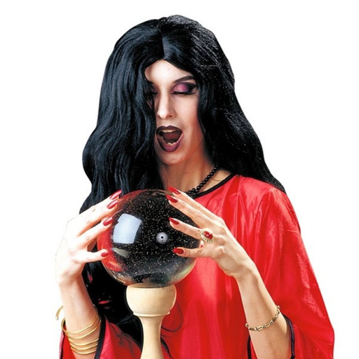 MaskeradeDiese schwarze Langhaarperücke mit leichten Wellen und Mittelscheitel veredelt jede Verkleidung – perfekt als Hexe, Wahrsagerin, Glamour Girl und v...