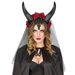 Glamouröse schwarze Hörner auf einem Haarreif, verziert mit leuchtend roten Rosen, einem zarten schwarzen Schleier und einer Spitzenfront, veredelt durch einen funkelnden schwarzen Schmuckstein. Ein markantes Accessoire, das jedem Fantasierollen- oder Mittelalterkostüm eine düstere, elegante Note verleiht. Komfortabel zu tragen, leicht kombinierbar und sofort bereit für Auftritte oder Motto-Partys. Perfekt geeignet für einen unvergesslichen Auftritt mit Stil.
